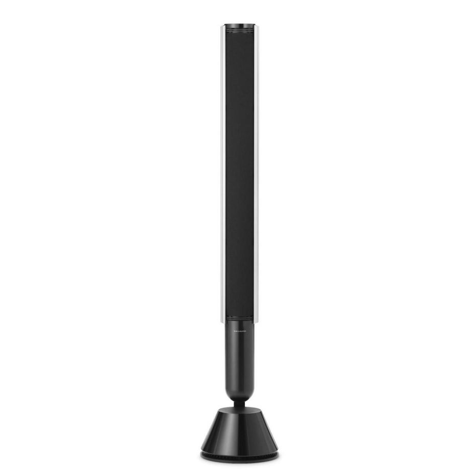 De twee Beolab 28's maken het systeem compleet, uitgevoerd in Cosmic Black – een oneindig diepe tint. Aluminium lamellen bekronen de donkere stof eronder, die parelmoerglans heeft gekregen voor een hoog contrast. Het is de eerste keer dat we dit proces of deze kleurstelling hebben gebruikt.