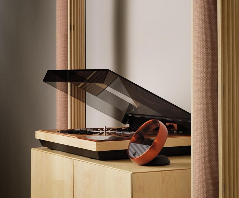 Het systeem wordt bediend met een op maat gemaakte Beoremote Halo in Amber Tone-afwerking en een speciaal ontworpen Bang & Olufsen draaitafelmeubel van berkenhout. Dit meubel fungeert tevens als verbindingshub voor integratie met het slimme Bang & Olufsen-ecosysteem, biedt handige opbergruimte voor een vinylcollectie en heeft een ingebouwd draadloos laadstation voor de Beoremote Halo.